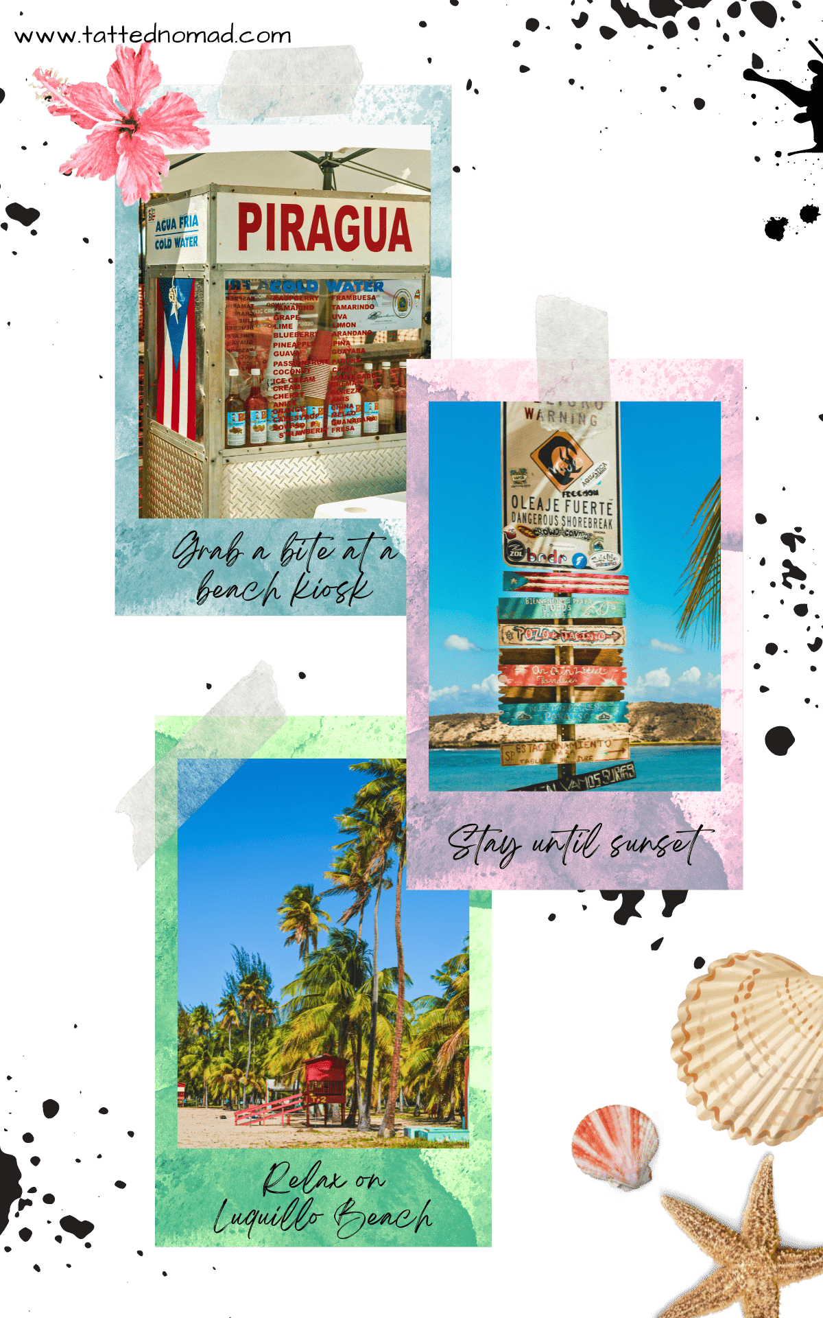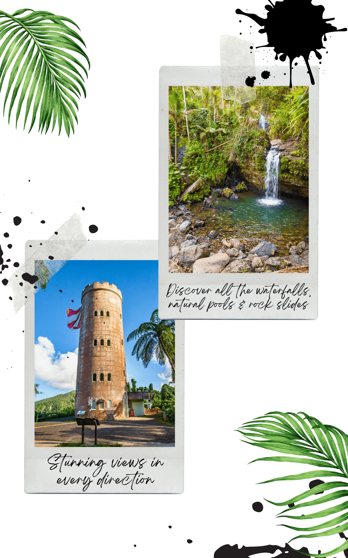 polaroid photos of luquillo beach and el yunque national rainforest puerto rico 5 day itinerary banner